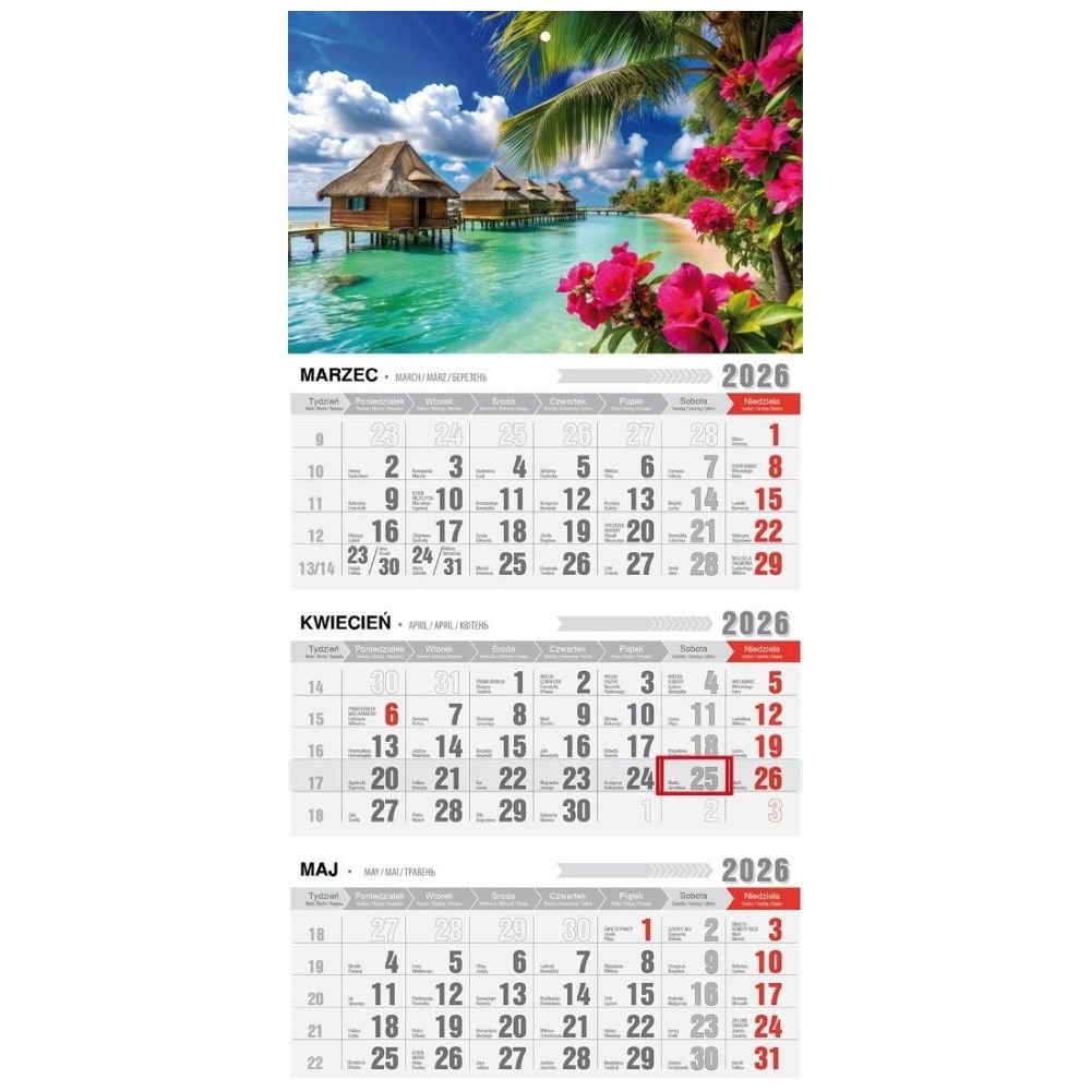 Kalendarz 2026 trójdzielny z magnesem tropiki