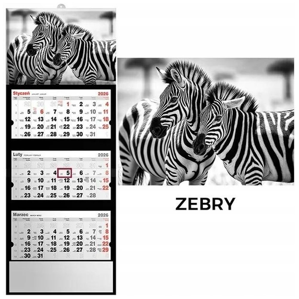 KALENDARZ TRÓJDZIELNY 2026 WYMIAR CAŁKOWITY KALENDARZA: 32 x 85,5cm GŁÓWKA KALENDARZA: Zdjęcie uszlachetniane folią błysk, z efektem wypukłości. KALENDARIUM: wym. 28,5 x 14 cm, trójjęzyczne (PL, GB, D), z numeracją tygodni i imieninami jest przytrzymywane przez kartonowe wypustki, które zapobiegają jego odstawaniu od plecków kalendarza. WYKOŃCZENIE: kartonowa zawieszka, pasek z czerwonym przesuwanym okienkiem, miejsce na notatki. WYMIAR ZDJĘCIA 32 x 22 cm ZDJĘCIE Z EFEKTEM WYPUKŁOŚCI: uszlachetnione folią błysk.