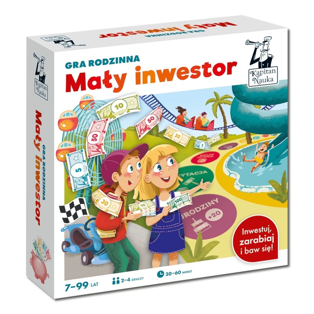 ,,Mały inwestor” (7+) to emocjonująca rodzinna gra ekonomiczna, która nauczy dzieci przedsiębiorczości i kreatywności finansowej. Gracze wymyślają strategię finansowania swoich wakacji marzeń. Planują działania, by oszczędzać i zarobić na wstęp do sześciu z 24 superatrakcyjnych miejsc, takich jak park dinozaurów, trampolin czy aquapark. Zamiast inwestować w nieruchomości, kombinują, co przyniesie oczekiwany dochód, oszczędzają kieszonkowe, licytują się, lokują zgromadzony kapitał lub biorą pożyczki. Aby wygrać, konieczne są umiejętność kombinowania, zwycięska taktyka w inwestowaniu oraz łut szczęścia. Wygrywa ten, kto pierwszy zdobędzie pieniądze na sześć atrakcji oraz uniknie długów.