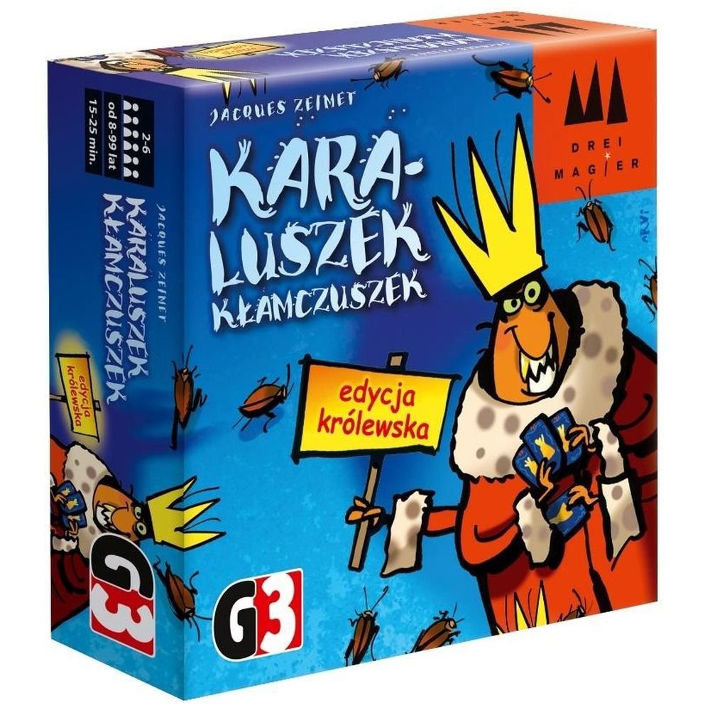 To karaluch? Ropucha? A może karta królewska? Czy przeciwnik mówi prawdę czy blefuje? “Karaluszek kłamczuszek (edycja królewska)” to gra o zwierzakach, których nikt nie lubi. Istotną rolę odgrywa tutaj umiejętność blefowania i obserwacja innych graczy. Sprytne oszukiwanie pozwoli wykiwać przeciwników i wcisnąć im jak najwięcej kart.