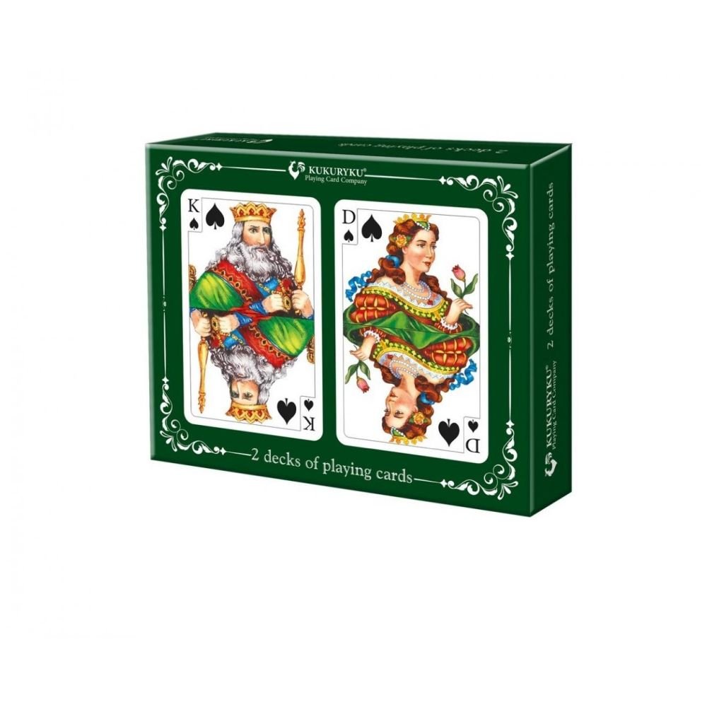 Gry karciane doskonalą umiejętność logicznego myślenia. Zestaw zawiera dwie talie po 54 karty do gry.