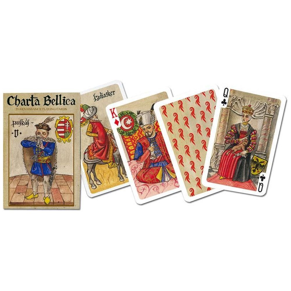 Najwyższej jakości karty do gry renomowanej firmy Ferd. Piatnik & Sohne. Jedna z najbardziej oryginalnych talii, przedstawiająca cztery narody końca XVI w.: Węgrów (kiery), Turków (karo), Niemców (trefle) i Polaków (piki). Wszystkie obrazy – wizerunki miast, władców, rycerstwa i przedstawicieli innych klas – namalował artysta Somogyi Marton. Talia składa się z 54 plastikowanych kart o wymiarach 58 x 89 mm i gramaturze 310. Idealna zarówno do brydża, pokera, remika jak i innych gier. Wyroby wiedeńskiej fabryki Ferd. Piatnik & Sohne od 1824 roku urzekają bogactwem wzorów i perfekcją wykonania. Jakość i tradycja!