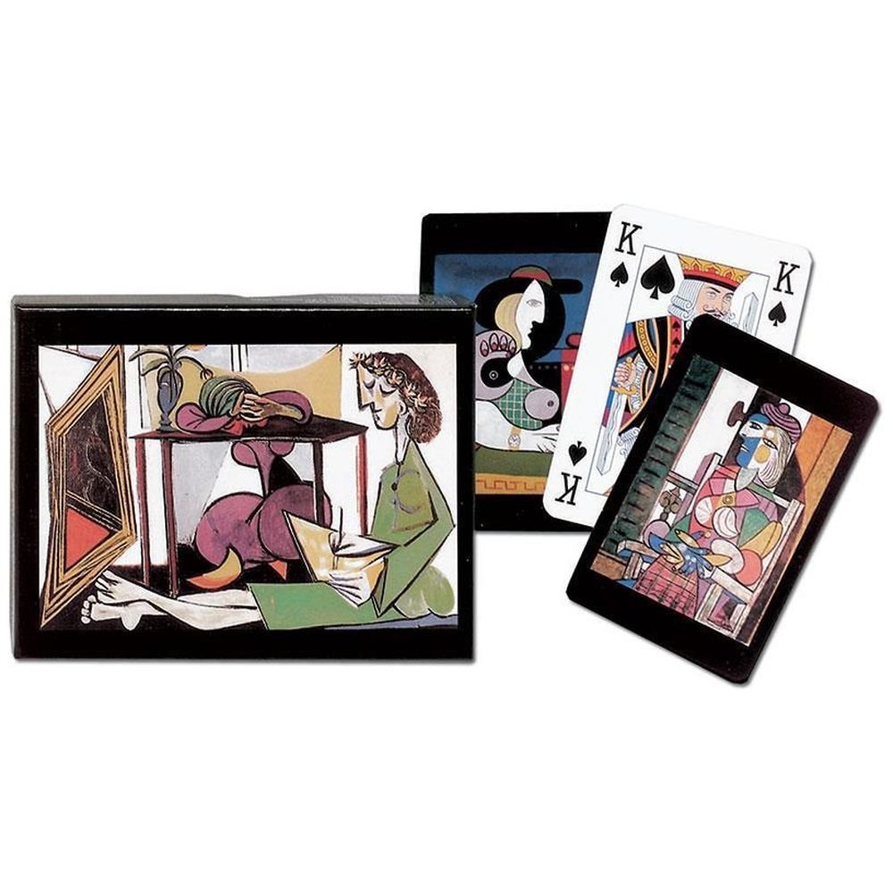Najwyższej jakości karty do gry renomowanej firmy Ferd. Piatnik & Sohne. W komplecie 2 talie w eleganckim czarnym pudełku. Na rewersach (koszulkach) i na pudełku obrazy Pablo Picasso. Talie składają się z 55 plastikowanych kart o wymiarach 58 x 89 mm i gramaturze 310. Idealne zarówno do brydża, pokera, remika jak i innych gier. Wyroby wiedeńskiej fabryki Ferd. Piatnik & Sohne od 1824 roku urzekają bogactwem wzorów i perfekcją wykonania. Jakość i tradycja!