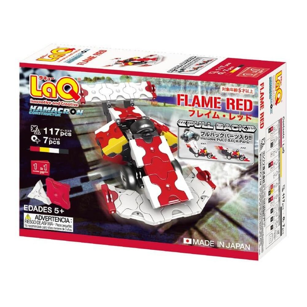 117 części; specjalne części Hamacron, w tym nowa część 'Pull-Back' (po cofnięciu samochodu i puszczeniu, zaczyna on samodzielnie jechać); 1 schematy konstruowania: LaQ samochód "Flame Red" 4 kolorów; Zalecany wiek: 5 + Poziom trudności: Średni.