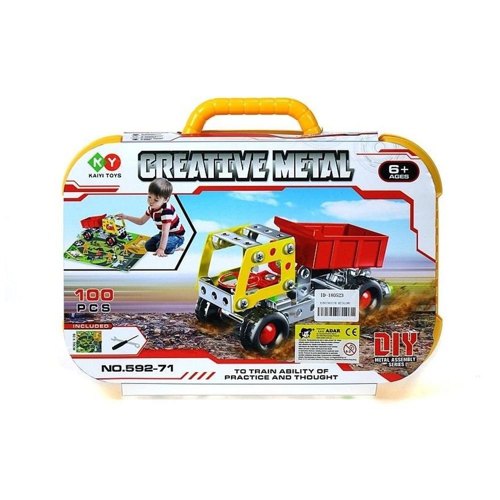 zestaw 100 metalowych klocków do skręcania, z matą z ulicą, w walizce; Box