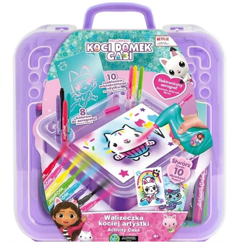 Walizeczka kociej artystki z linii Koci Domek Gabi to wspaniały pomysł dla każdej małej artystki. Walizeczka jest poręczna i wygodna. Zawiera wszystko, co jest potrzebne do kreowania wspaniałych projektów za pomocą aerografu: markery, szablony, naklejki.