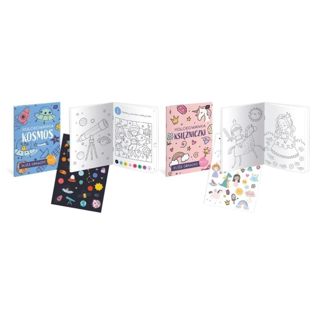 Kolorowanka A4/16K z naklejkami kosmos,księżniczki