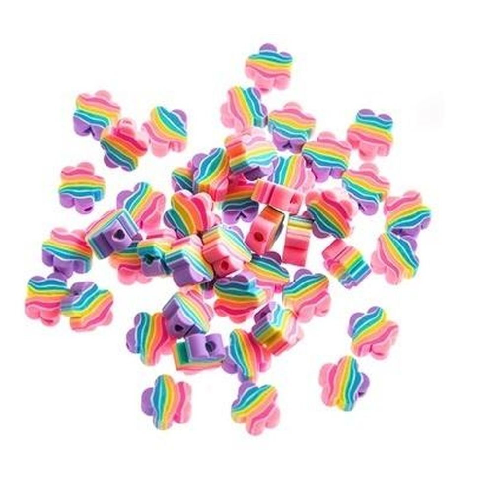 Koraliki polimerowe tęczowe kwiatki 1cm 48szt