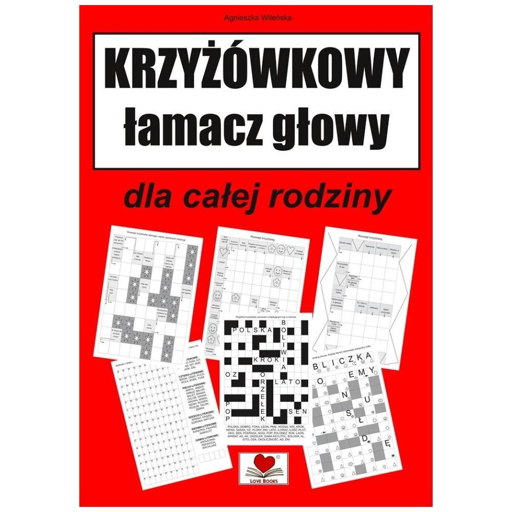 Krzyżówkowy łamacz głowy dla całej rodziny Love Books Format B5, oprawa miękka, stron 20 Krzyżówkowy łamacz głowy to doskonała rozrywka dla całej rodziny.