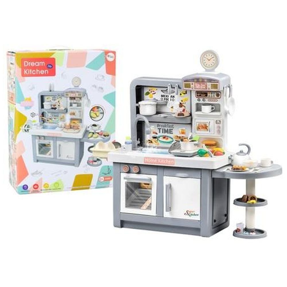 Kuchnia Marzeń Dla Dzieci Światła Dźwięki Para Akcesoria Szara Nasza kuchnia to doskonały prezent, który spełni te marzenia, umożliwiając maluchowi przygotowywanie ulubionych dań w bezpiecznym i kreatywnym środowisku. Dzięki tej kuchni, dzieci mają okazję poznać narzędzia i składniki używane w prawdziwej kuchni, co stanowi fantastyczne wprowadzenie do świata kulinariów i codziennego życia. Podczas zabawy naszą kuchnią, dzieci rozwijają swoją kreatywność. Ilość przygotowywanych przez nie potraw ogranicza jedynie ich wyobraźnia, co sprawia, że każda sesja kulinarna jest wyjątkowa i pełna nowych odkryć. Kuchnia jest utrzymana w siwej kolorystyce, co z pewnością przypadnie do gustu małym kucharzom, zachęcając je do spędzania czasu na kreatywnej zabawie. Wyposażona w mnóstwo potrzebnych akcesoriów, takich jak garnki, naczynia, potrawy, warzywa i owoce przystosowane do krojenia, nasza kuchnia zapewnia realistyczne doświadczenie gotowania. Każdy element jest starannie wykonany, aby maksymalnie oddać rzeczywistość, a jednocześnie zachować bezpieczeństwo zabawy. Dzięki temu dzieci mogą uczyć się, jak prawidłowo trzymać nożyk, mieszać składniki w garnkach, czy serwować posiłki na talerzach. Dodatkowo, nasza kuchnia posiada zaawansowane funkcje dźwięku, światła oraz pary wodnej, które dodają autentyczności i angażują dzieci na wiele godzin. Kiedy dziecko włącza palniki, pojawia się dźwięk gotującej wody oraz realistyczna para, która jednak jest całkowicie bezpieczna i nie jest gorąca. Świecące elementy i odgłosy kuchenne tworzą atmosferę prawdziwej kuchni, co sprawia, że zabawa staje się jeszcze bardziej ekscytująca. Dzięki tej kuchni, każde dziecko może poczuć się jak prawdziwy mistrz kulinarny, ucząc się jednocześnie cennych umiejętności. Rozpoznawanie różnych narzędzi kuchennych, składników oraz podstawowych technik gotowania to nie tylko zabawa, ale także nauka przez doświadczenie, co ma ogromne znaczenie w rozwoju każdego małego kucharza. Nasza kuchnia zabawka to inwestycja w rozwój dziecka, łącząca przyjemne z pożytecznym, a jednocześnie gwarantująca wiele godzin radosnej i twórczej zabawy. Kuchnia zasilana jest na baterie 2x 1.5V AA oraz 3X 1.5V AAA, które nie są elementem zestawu. Wymiary kuchni: 108cm x 98cm x 35,5cm Wymiary opakowania: 66cm x 48cm x 23,5cm Posiada certyfikat CE, ponadto jest zgodny z normą EN71. Przeznaczony dla dzieci powyżej 3 roku życia.