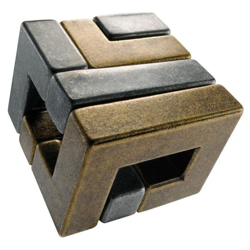Łamigłówka wygląda jak pudełko z dziurką w środku, ale w rzeczywistości składa się z dwóch połączonych, praktycznie identycznych części.