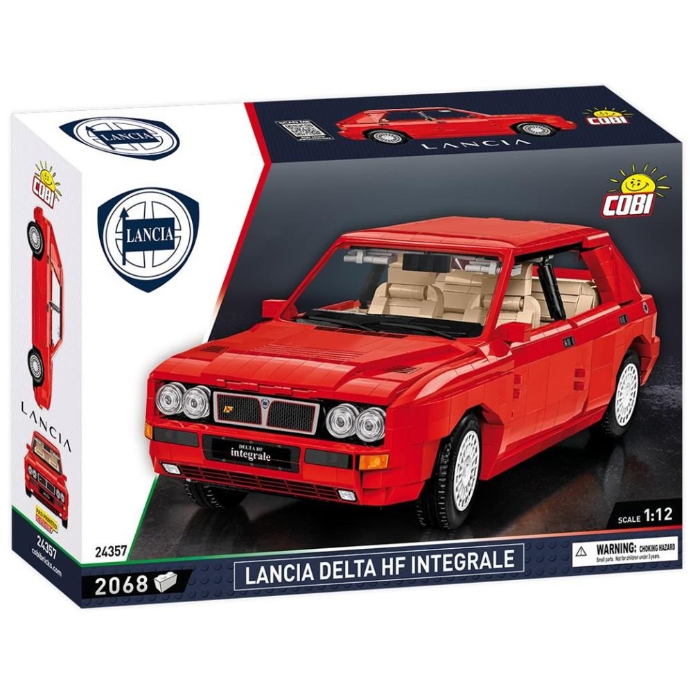 COBI-24357 LANCIA DELTA HF INTEGRALE 2068 klocki 0 figurek Grupa wiekowa 11+ Skala 1:12 Ten kompaktowy samochód zdobył serca miłośników motoryzacji dzięki fenomenalnym osiągom, jakości i włoskiemu designowi. Lancia Delta odnosiła liczne sukcesy sportowe, dominując przez długi czas w Rajdowych Mistrzostwach Świata! Nie dziwi fakt, że do dzisiaj wielu pasjonatów motoryzacji darzy ten model wielkim sentymentem, marząc o jego posiadaniu! Firma COBI wychodzi naprzeciw marzeniom i sentymentom! Kultowe auto zbudowaliśmy w skali 1:12 przy wykorzystaniu 2068 elementów. Charakteryzuje się intensywnym, czerwonym, sportowym kolorem nadwozia! Po zbudowaniu sportowa Lancia Delta ma aż 33 cm długości i prezentuje się niezwykle okazale! Specjalnie zaprojektowane elementy w tym przednia szyba, charakterystyczne felgi, mnóstwo detali, skrętne koła i działająca kierownica, otwierane drzwi, uchylna maska, odwzorowany z klocków silnik oraz szczegółowe wnętrze sprawiają, że klockowy model usatysfakcjonuje kolekcjonerów oraz fanów motoryzacji niezależnie od wieku. Zbuduj legendę, klocek po klocku! Lancia to włoski producent samochodów o bogatej historii i znaczącym dziedzictwie motoryzacyjnym. Założona w 1906 roku przez Vincenzo Lancia i Claudio Fogolin, firma szybko zyskała reputację innowatora w branży samochodowej. Lancia wprowadziła wiele nowatorskich rozwiązań technicznych, takich jak niezależne zawieszenie wszystkich kół czy silniki V4 i V6. Ich samochody zawsze cechowała wysoka jakość wykonania i dbałość o szczegóły. Marka ta miała również znaczący udział w sporcie motorowym, sięgając po zwycięstwa w wyścigach i rajdach, w tym tytuły w Rajdowych Mistrzostwach Świata. Lancia wyprodukowała wiele ikonicznych modeli, takich jak Lancia Delta Integrale, Lancia Stratos czy Lancia Fulvia, które do dziś są cenione przez miłośników klasyków. 2068 wysokiej jakości elementy produkt na oryginalnej licencji LANCIA wyprodukowane w UE przez firmę z ponad 20-letnią tradycją, spełniają normy bezpieczeństwa dotyczące produktów dla dzieci, w pełni kompatybilne z innymi markami klocków konstrukcyjnych, klocki z nadrukami nie odkształcają się i nie bledną w czasie zabawy czy pod wpływem temperatury, skala 1:12, Wymiary modelu (dł x szer x wys): 33 cm (12.99") x 14 cm (5.51") x 12 cm (4.72")