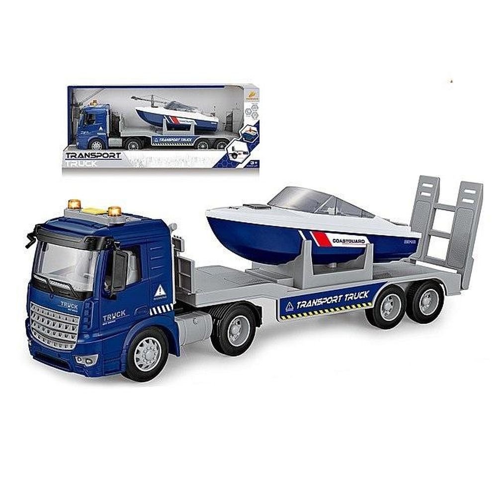 auto z lawetą i motorówką, światło, dźwięk; 41,5x18x10,5cm, W/B