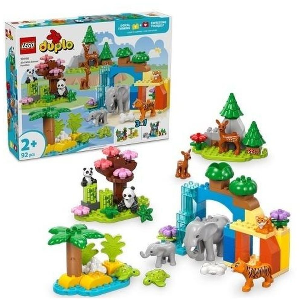 Zabawka edukacyjna dla maluchów zestaw LEGO DUPLO Rodziny Dzikich Zwierząt 3 w 1 zabierze dzieci w wieku od 2 lat w przygodę dookoła świata, ucząc je wielu umiejętności potrzebnych na wczesnych etapach życia