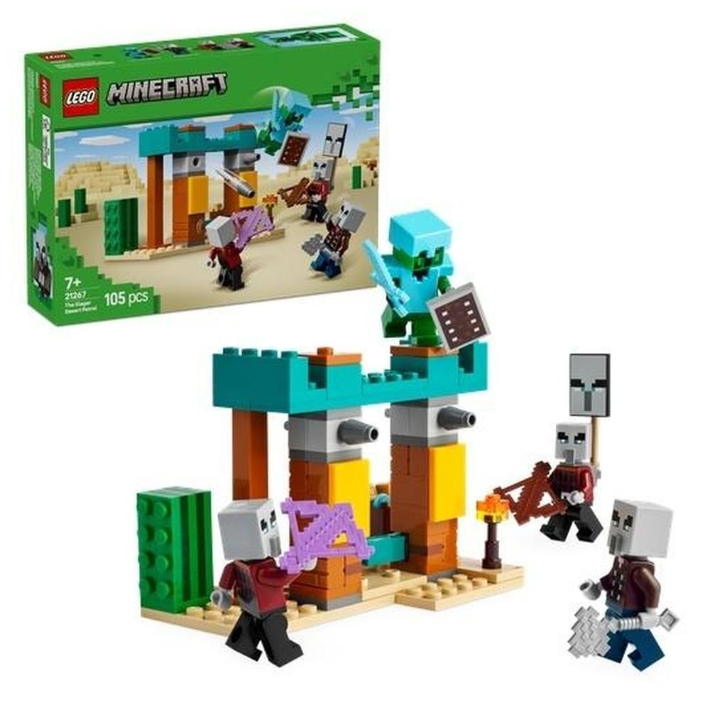 Na pustynnym posterunku z gry Minecraft dzieci mogą wcielić się w rolę kaktusowego rycerza z diamentową zbroją, tarczą i mieczem. Gdy przybywa trzech złosadników, by ukraść skarb, dzieci muszą bronić posterunku. Zestaw zawiera pociski, które dzieci mogą wystrzelić palcami, różne rodzaje broni i beczkę ze skarbem. Dodatkową cyfrową zabawę zapewnia aplikacja LEGO Builder, która pozwala dzieciom powiększać i obracać modele w 3D na urządzeniu.