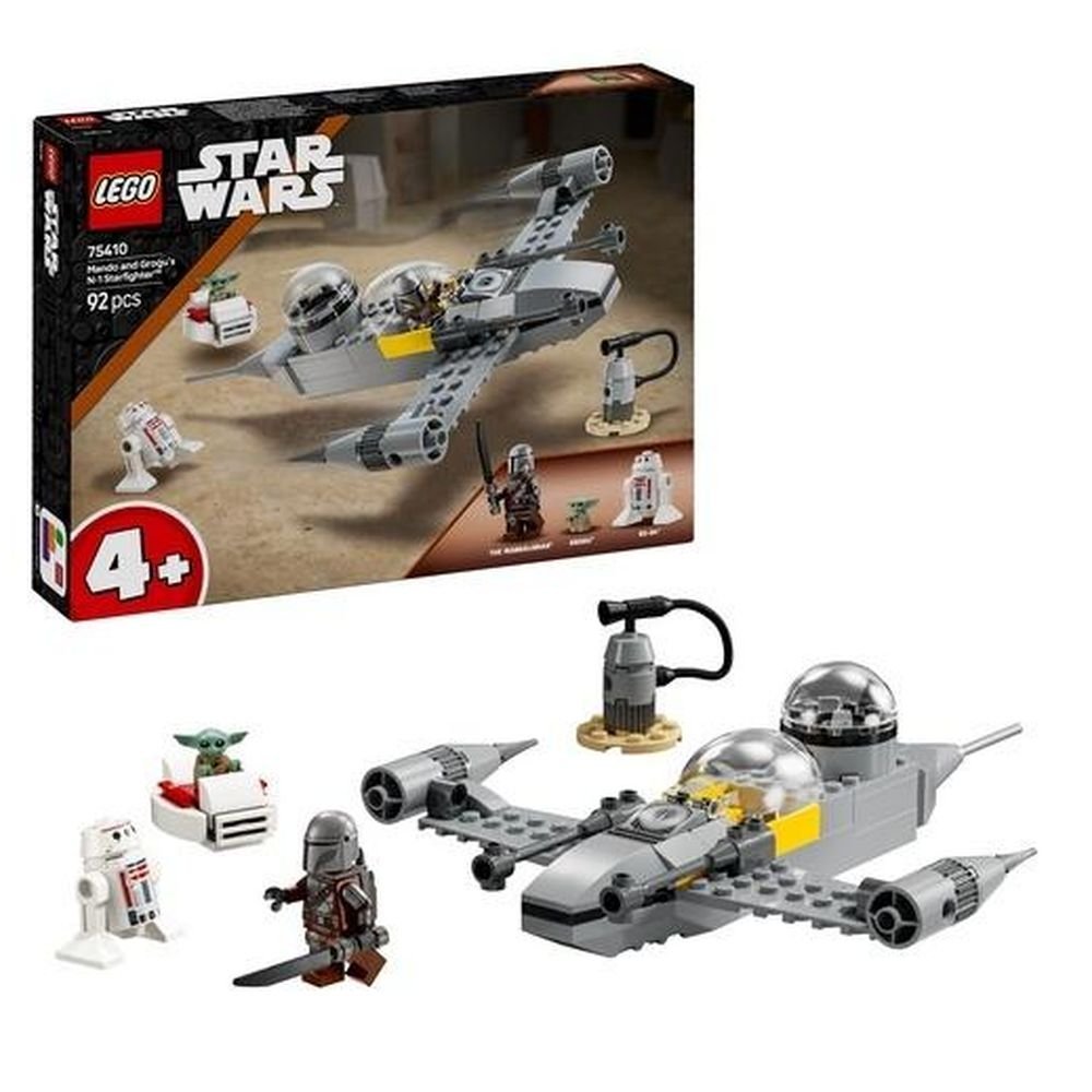 Ten prosty zestaw LEGO dla 4-latka z modelem myśliwca N-1 zawiera trzy postacie LEGO Star Wars: Mandalorianina z mrocznym mieczem i plecakiem odrzutowym, Grogu z lewitującym wózkiem i droida R5-D4. Dzieci mogą umieścić minifigurkę Mandalorianina w otwieranym kokpicie myśliwca N-1, a Grogu w części pasażerskiej z tyłu.