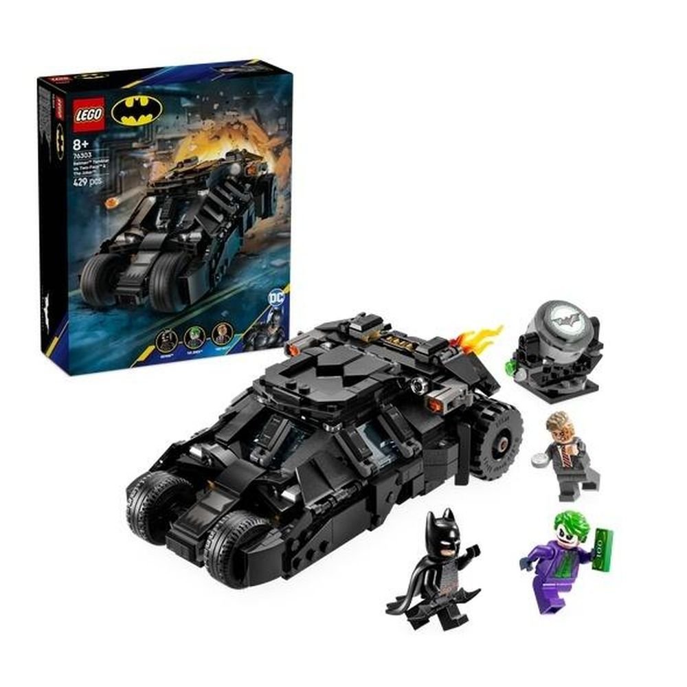 Ten zestaw LEGO Batman zawiera trzy minifigurki znanych postaci: Batmana uzbrojonego w Batarang, Jokera trzymającego plik banknotów i Dwóch Twarzy z charakterystyczną srebrną monetą. Tumbler Batmobil otwiera się, odsłaniając panel sterowania i kokpit z miejscem dla Batmana. W rurze wydechowej znajduje się element z płomieniem, a projektor z batsygnałem (nie świeci) przechyla się i obraca o 360 stopni w obu kierunkach. Dodatkową cyfrową zabawę oferuje intuicyjna aplikacja LEGO Builder, w której można obracać modele w 3D i śledzić swoje postępy.