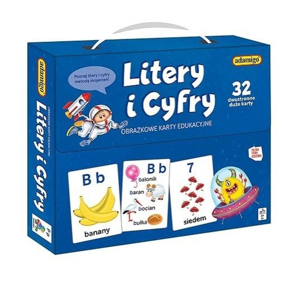 Obrazkowe karty edukacyjne to praktyczna pomoc stworzona z myślą o najmłodszych dzieciach poznających alfabet i cyfry. Sprawdzą się podczas nauki w przedszkolu oraz w domu. W zestawie znajduje się 27 dwustronnych kart z literami oraz 5 z cyframi.