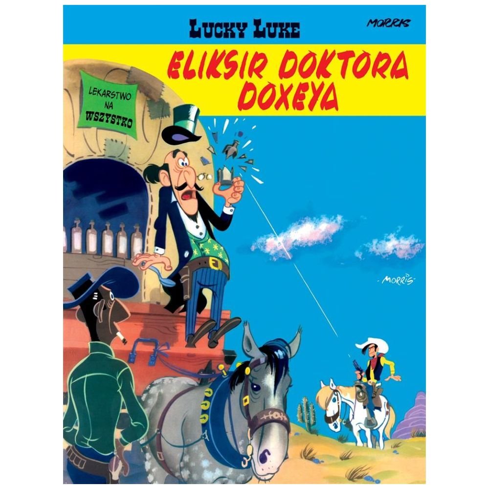 Siódma z serii opowieści o Lucky Luke'u, kowboju, który przemierza bezdroża Ameryki i zawsze staje po stronie prawa. Dziki Zachód to eldorado dla oszustów i szarlatanów. Spośród nich wyróżnia się doktor Doxey, który sprzedaje podejrzane leki na wszelkie choroby. A jak się czują pacjenci po zażyciu jego medykamentów? O tym najlepiej przekonuje się Lucky Luke, który trafia do miasta pełnego ludzi cierpiących po wypiciu jednego z eliksirów Doxeya. Samotny Kowboj wyrusza śladem fałszywego uzdrowiciela, jednak ten okazuje się sprytnym przeciwnikiem! Serię "Lucky Luke" wymyślił znakomity francuski scenarzysta i rysownik Morris (właśc. Maurice de Bevere, 1923-2001), który później zaprosił do współpracy sławnego pisarza Ren Goscinnego (1926-1977). Po śmierci obu ojców Samotnego Kowboja scenariusze i rysunki kolejnych odcinków cyklu są tworzone przez licznych kontynuatorów.