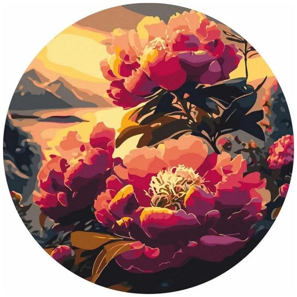 Malowanie po numerach okrągłe – Różowy kwiat 40cm