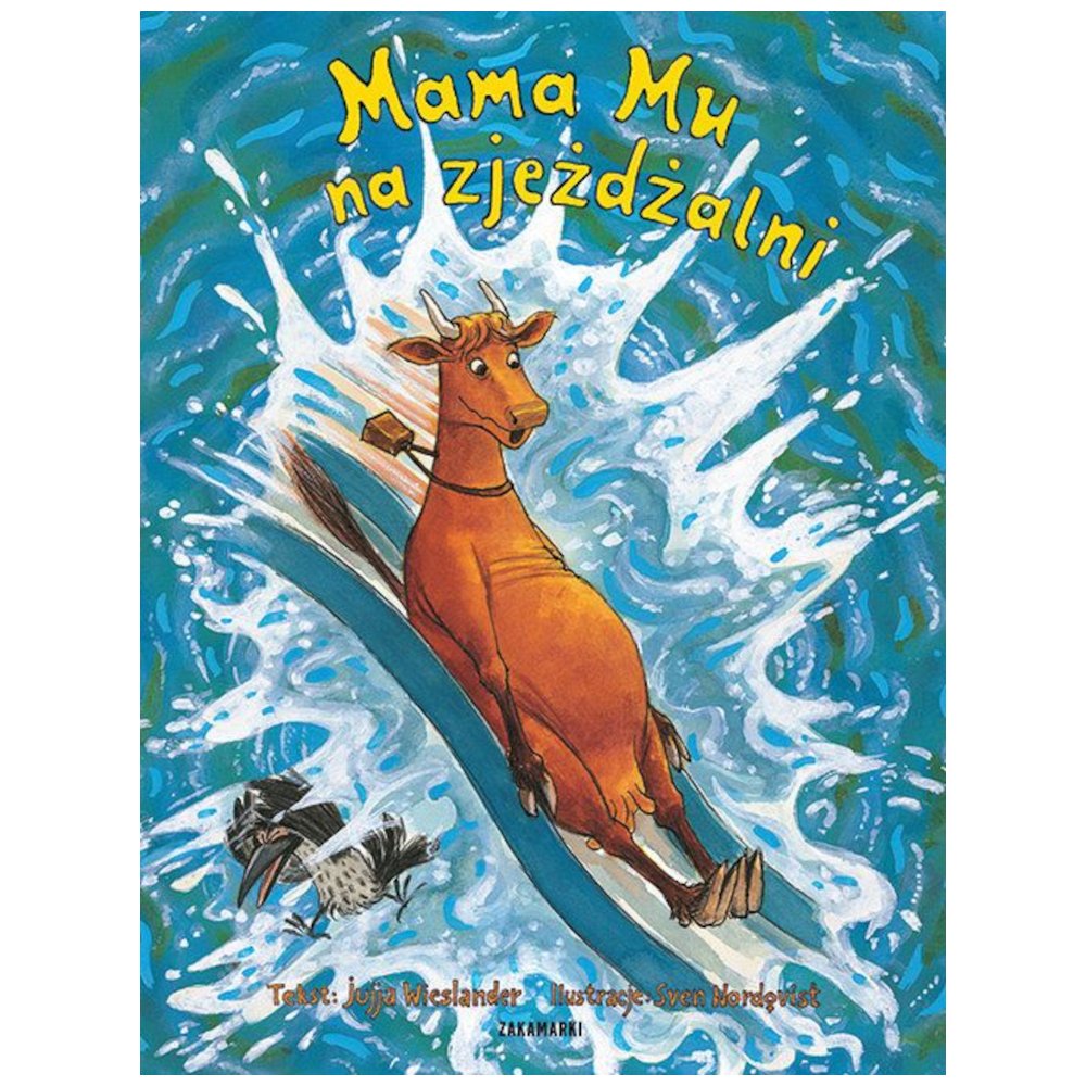 Czy krowy mogą zjeżdżać ze zjeżdżalni? I to takiej, z której wpada się prosto do jeziora? Mama Mu jak zwykle udowodni, że krowy potrafią się bawić równie wesoło jak dzieci. Nie zniechęci jej nawet krytyka i pouczanie Pana Wrony. Tylko co zrobić z powyginaną po zjeździe zjeżdżalnią? Jak ją naprawić? Trzeba z tym zdążyć, zanim wrócą dzieci!