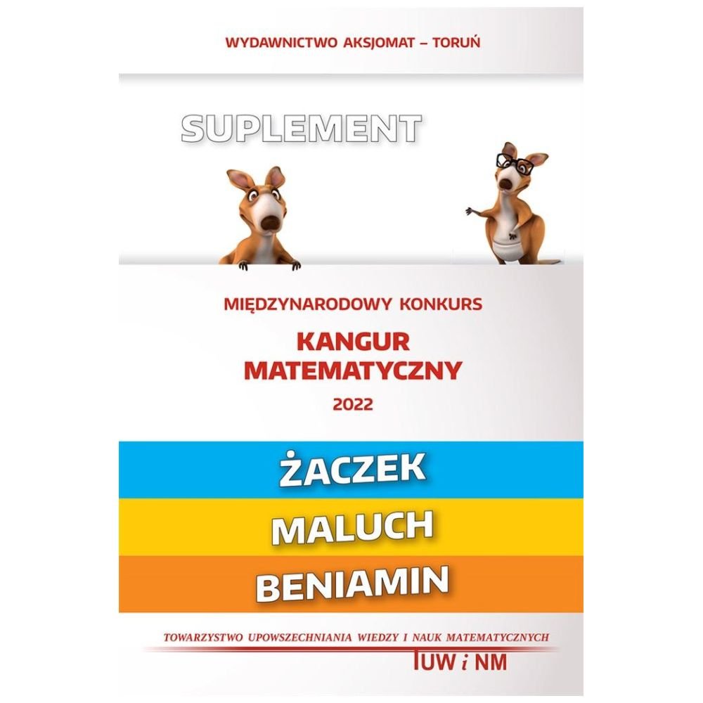 Testy konkursu międzynarodowego "KANGUR MATEMATYCZNY" dla poziomów Żaczek, Maluch oraz Beniamin, wraz z odpowiedziami (dla wszystkich trzech) i rozwiązaniami(dla poziomu Maluch oraz Beniamin) tylko z roku 2022. Skład kolorowy. Ta książka jest uzupełnieniem (suplementem) do książek z serii "Matematyka z wesołym kangurem" z poziomu Żaczek, Maluch i Beniamin. W książce znajdziesz: Testy konkursu międzynarodowego "Kangur Matematyczny" tylko z roku 2022 wraz z odpowiedziami!
