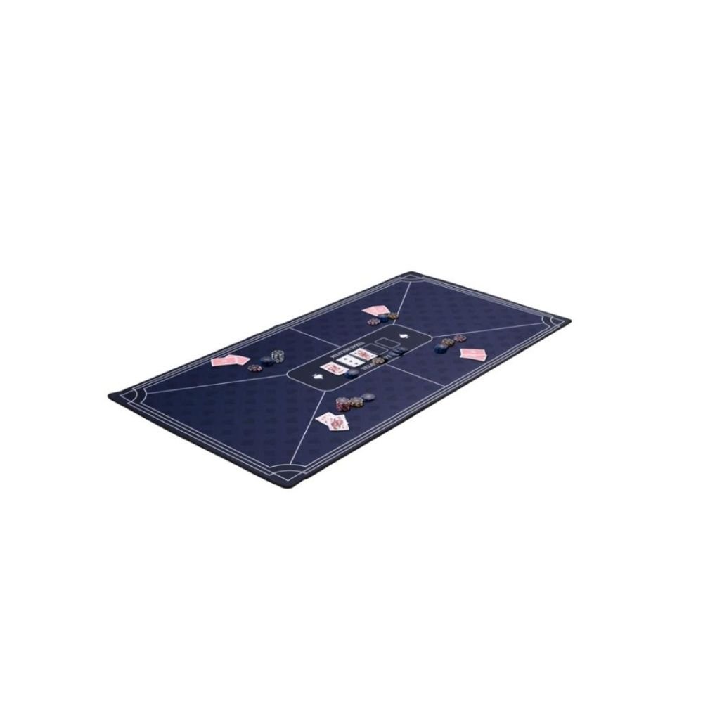 Wysokiej jakości mata pokerowa o wymiarach 118×59 cm wykonany z poliestru i gumy zapewnia stabilną oraz gładką powierzchnię do gry. Dzięki antypoślizgowej warstwie z gumy, nie przesuwa się podczas gry. Dzięki swojej dużej powierzchni, dywan zapewnia wystarczająco miejsca na wszystkie niezbędne akcesoria pokerowe, a jego trwała konstrukcja sprawia, że będzie służył przez długi czas.