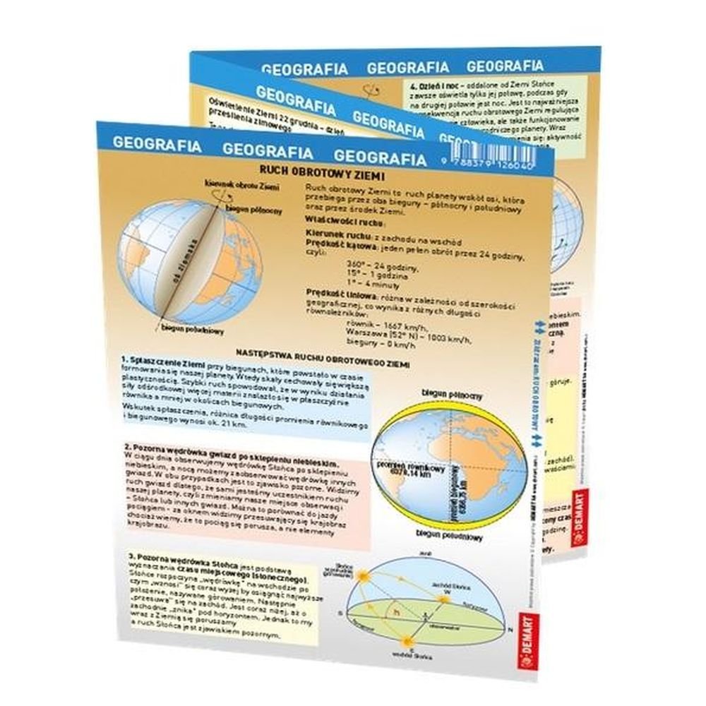 Zestaw ściągawek do geografii w formie składanej harmonijki.