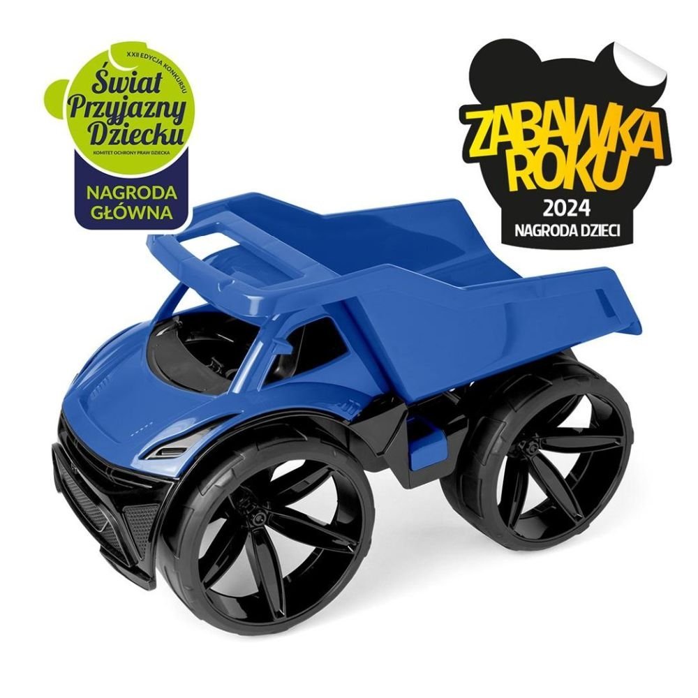 MAXIMUS to nowa seria nowoczesnych pojazdów przyszłości, synonim nowoczesności, śmiałego designu i wysokiej jakości wykonania właściwej pojazdom klasy Premium – dzieci je pokochają! MAXIMUS to duża wywrotka w kolorze granatowym, która wyróżnia się: nowoczesnym designem, solidną lekką konstrukcją, nowoczesną linią nadwozia z dużymi matowymi kołami oraz pięknym wykończeniem detali. Dodatkowo posiada ruchomy otwierany kiper oraz wygodny uchwyt co pozwala na urozmaiconą i realistyczna zabawę, można wykorzystywać go do przewożenia piasku lub innych zabawek. Pojazd ma 59 cm długości.