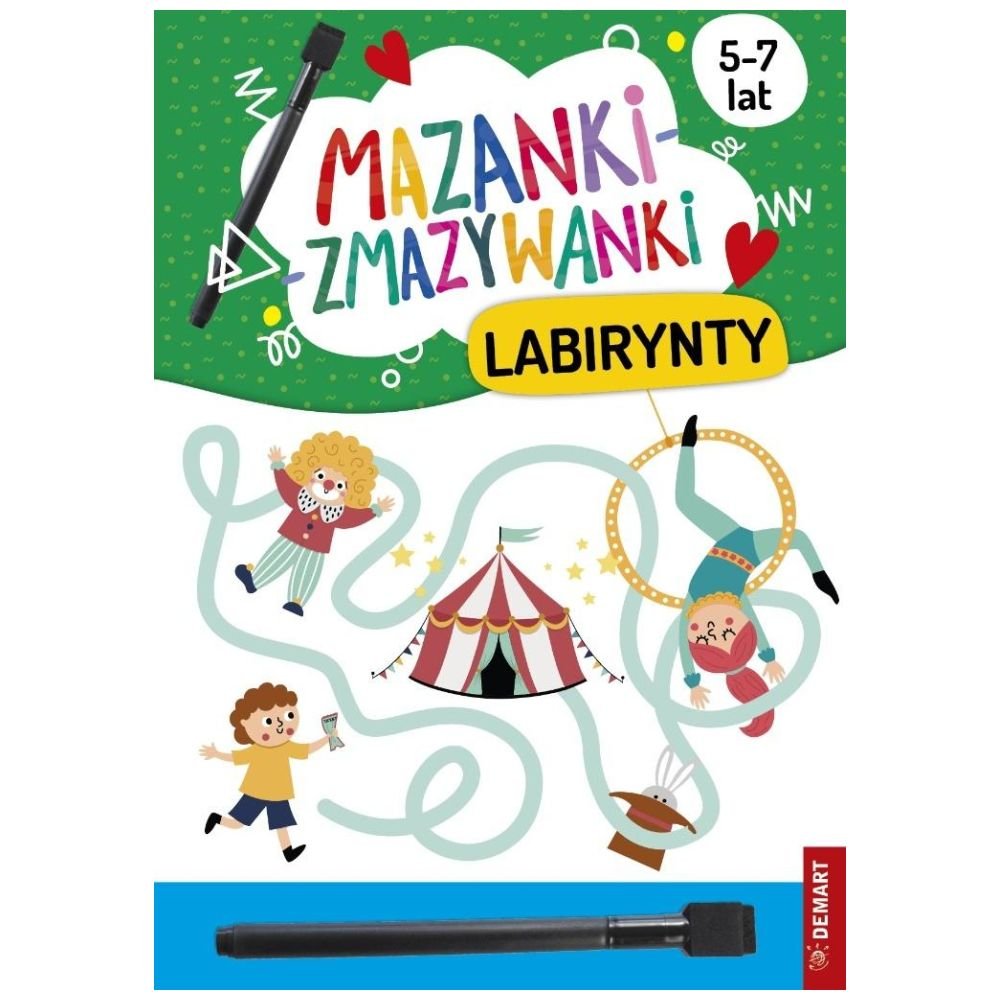 To atrakcyjna publikacja z różnorodnymi rodzajami labiryntów rozwija nie tylko percepcję wzorkową dzieci, ale także motorykę małą: stymuluje precyzję ruchów, doskonali koordynację wzrokowo-ruchową i reguluje napięcie mięśniowe w obrębie dłoni i obręczy barkowej. Od tego, w jaki sposób Twoje dziecko opanuje pisanie – jedną z kluczowych umiejętności w wychowaniu przedszkolnym i edukacji wczesnoszkolnej, zależy powodzenie na dalszych poziomach kształcenia. Seria książek z pisakiem suchościeralnym, dzięki którym Twoje dziecko ma szansę rozwijać motorykę małą, czyli sprawność dłoni i palców, i nie zrażać się, że coś poszło nie tak! Twoja pociecha może osiągnąć sukces w nauce kreślenia i pisania!