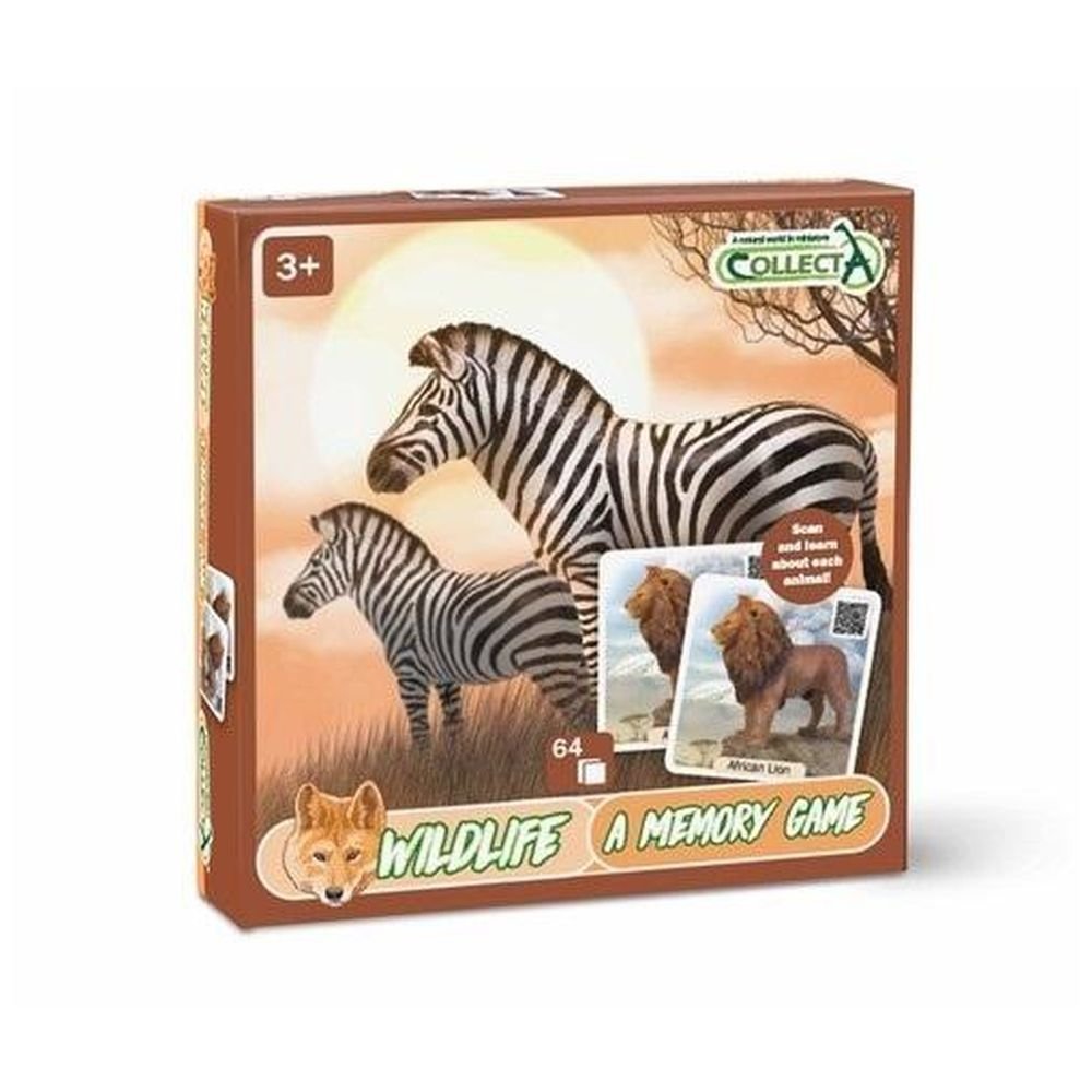 Gra pamięciowa dla najmłodszych. Każda z 32 par przedstawia jedno z wybranych zwierząt, które jest dostępne również jako zwierzęca figurka kolekcjonerska marki Collecta. Zadaniem dzieci jest dopasowywanie do siebie par obrazków z kolorowymi zwierzętami. Każdy kafelek zawiera również kod QR, który po zeskanowaniu pozwala dowiedzieć się więcej o danym gatunku.