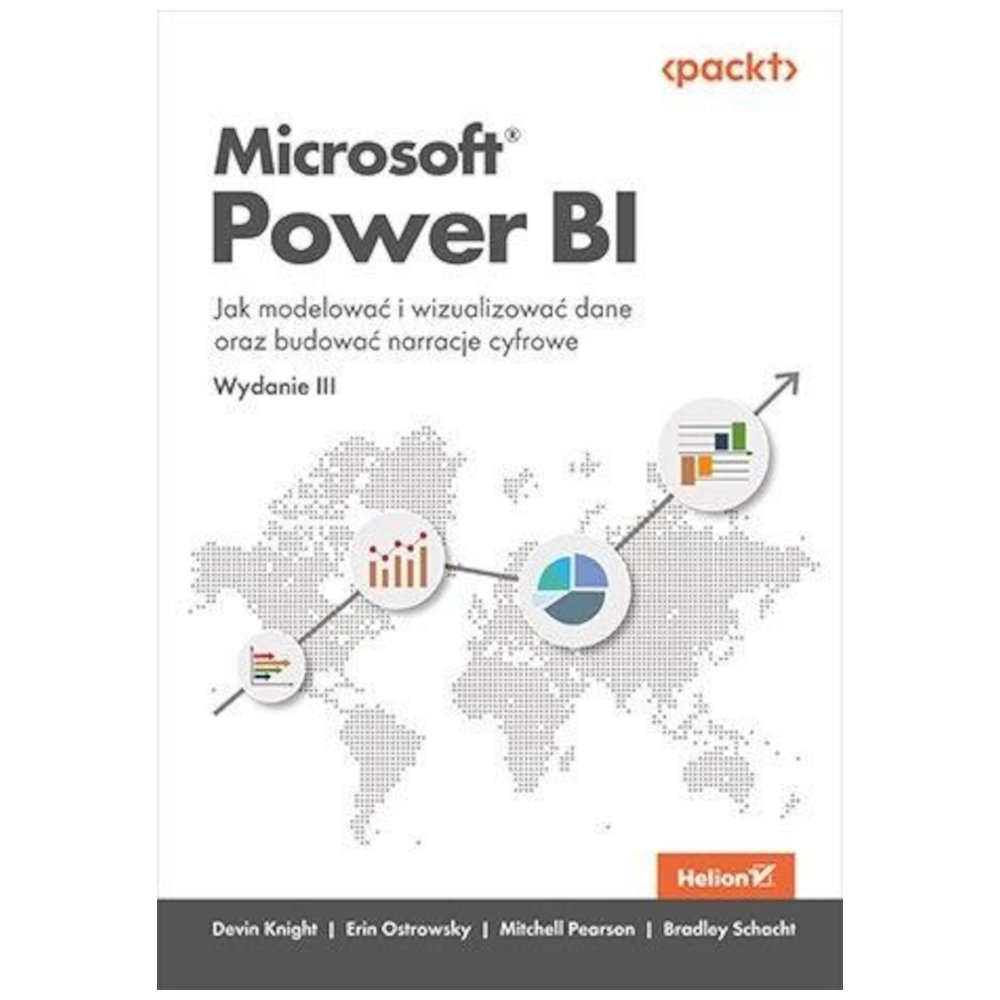 Ta książka jest trzecim, zmienionym i zaktualizowanym, wydaniem znakomitego przewodnika dla analityków biznesowych, dzięki któremu bezproblemowo rozpoczniesz pracę z Power BI i w pełni wykorzystasz jego możliwości. Po przeczytaniu jej będziesz lepiej rozumiał, w jaki sposób w pełni wykorzystać potencjał Power BI do tworzenia efektywnych strategii business intelligence. Dowiesz się, jak pozyskiwać i oczyszczać dane oraz jak projektować modele danych. Zapoznasz się ze stylami wizualizacji danych oraz z technikami tworzenia narracji cyfrowych. Nauczysz się analizować relacje w modelu danych i tworzyć reguły w języku DAX. W tym wydaniu znajdziesz też nowy rozdział poświęcony przepływom danych, w którym oprócz podstaw omówiono takie zagadnienia, jak projektowanie efektywnych modeli danych i budowanie podstawowych pulpitów nawigacyjnych. Ciekawsze zagadnienia: