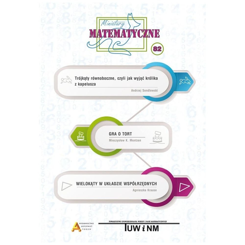 Na niniejszą książeczkę składają się trzy niezależne artykuły. Niewątpliwym bohaterem pierwszego z nich jest trójkąt równoboczny, ale nie jest to charakterystyka. Autor nie przedstawia tu rozlicznych i skądinąd bardzo ciekawych własności tej figury, lecz tropi jej czasami mocno ukrytą obecność w rozlicznych konfiguracjach geometrycznych. Nie ma żadnej przesady w tytule. Zapoznając się z kolejnymi przykładami, czujemy się jak na pokazie magii, tyle że zamiast królików z kapelusza wyłaniają się trójkąty równoboczne. A jak już je zauważymy, to pozornie chaotyczna sytuacja nabiera ładu i widać, jak znaleźć rozwiązanie. Drugi artykuł dotyczy "sprawiedliwego" podziału przysłowiowego tortu. Tort oznacza tu dowolne dobro, które nie może być matematycznie podzielone na równe części. W przypadku podziału na dwie części powszechnie znana jest procedura, która można streścić jako "jeden dzieli, drugi wybiera". Opis jej zastosowania znajdujemy już w Biblii. Tak właśnie Abraham i Lot podzielili między siebie krainę Kanaan. Sprawa komplikuje się jednak, gdy podziału należy dokonać pomiędzy większą liczbę osób lub gdy próbujemy podzielić dobra z natury niepodzielne. Jak na przykład dwóch kolegów powinno podzielić między siebie komputer i rower? Z pewnością są to problemy o dużym znaczeniu praktycznym. Można jedynie mieć wątpliwość, czy to jeszcze są problemy matematyczne. Problemami tymi zajął się na serio polski matematyk Hugo Steinhaus, który słynął z zainteresowania zadaniami leżącymi na styku matematyki, innych dziedzin wiedzy i działalności praktycznej. Śmiało można go nazwać współtwórcą współczesnej matematyki stosowanej. Artykuł w przystępnej formie przedstawia rozwiązania problemu podziału zaproponowane przez Steinhausa i innych matematyków. Trzeci, ostatni artykuł dotyczy prostokątnego układu współrzędnych. Przylgnęła do niego nazwa kartezjańskiego układu współrzędnych od nazwiska wielkiego, siedemnastowiecznego filozofa i matematyka Rene Descartes'a zwanego również Kartezjuszem. Legenda głosi, że wpadł on na pomysł układu, gdy leżąc w łóżku, obserwował muchę chodzącą po suficie i zastanawiał się, jak najprościej opisać komuś aktualne położenie muchy. Miał wówczas dojść do wniosku, że położenie najlepiej opisać, podając odległości muchy od dwóch sąsiednich ścian. Ile jest prawdy w tej legendzie? Z jednej strony wydaje się, że podobne pomysły pojawiały się to tu, to tam znacznie wcześniej. Z drugiej strony, na próżno szukać w dziele Kartezjusza o geometrii charakterystycznego obrazka z dwiema prostopadłymi osiami. Trzeba było pracy jeszcze jednego pokolenia matematyków, aby pomysły przyjęły znany nam dzisiaj kształt. Układ współrzędnych ułatwił rozwiązanie wielu problemów praktycznych, ale przede wszystkim pozwolił połączyć na nowo różne działy matematyki. Już w matematyce starożytnej Grecji można wyróżnić geometrię i arytmetykę, ale stanowiły jeszcze pewną całość. Matematycy tego czasu swobodnie używali metod geometrycznych do rozwiązania problemów arytmetycznych i odwrotnie. Wieki rozwoju oddaliły te dwa filary matematyki od siebie. Wprowadzenie układu współrzędnych pozwoliło odnaleźć nowe, twórcze powiązanie między nimi, które w krótkim czasie zaowocowało stworzeniem zupełnie nowych narzędzi matematycznych (np. w postaci rachunku różniczkowego i całkowego). Autorka artykułu pokazuje liczne przykłady elementarnych problemów geometrycznych, których rozwiązanie ułatwia zastosowanie współrzędnych, ale przedstawia też jedno z tych mniej oczywistych powiązań pomiędzy geometrią i arytmetyką, których odkrycie umożliwiło zastosowanie układu współrzędnych. Chodzi tu o twierdzenie Picka, które sprowadza obliczanie pola pewnych wielokątów do liczenia szczególnych punktów na płaszczyźnie (tzw. punktów kratowych).