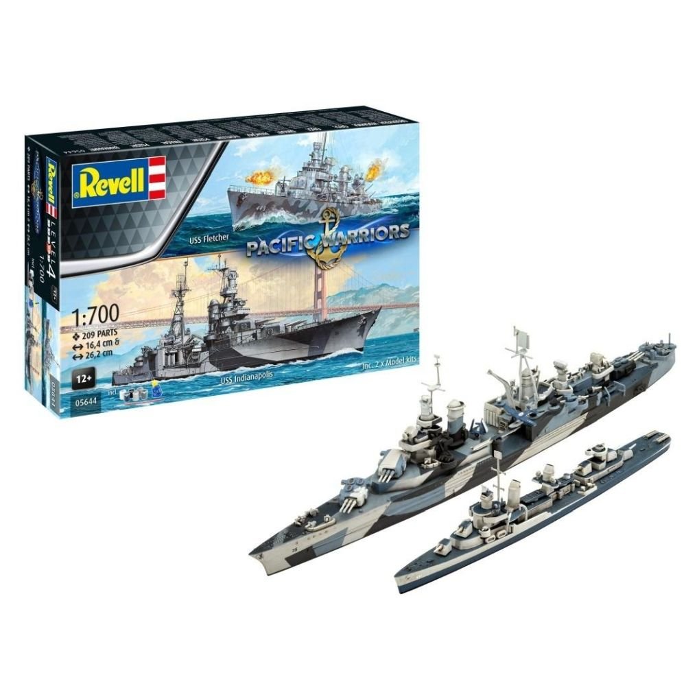 Zestaw modeli okrętów USS Fletcher i USS Indianapolis: Oba były wszechstronnymi i niezawodnymi niszczycielami US Navy podczas wojny na Pacyfiku. USS Indianapolis niestety negatywnie zasłynął, przez fakt że został zatopiony przez japoński okręt podwodny, po przewiezieniu elementów bomby atomowej Little Boy.