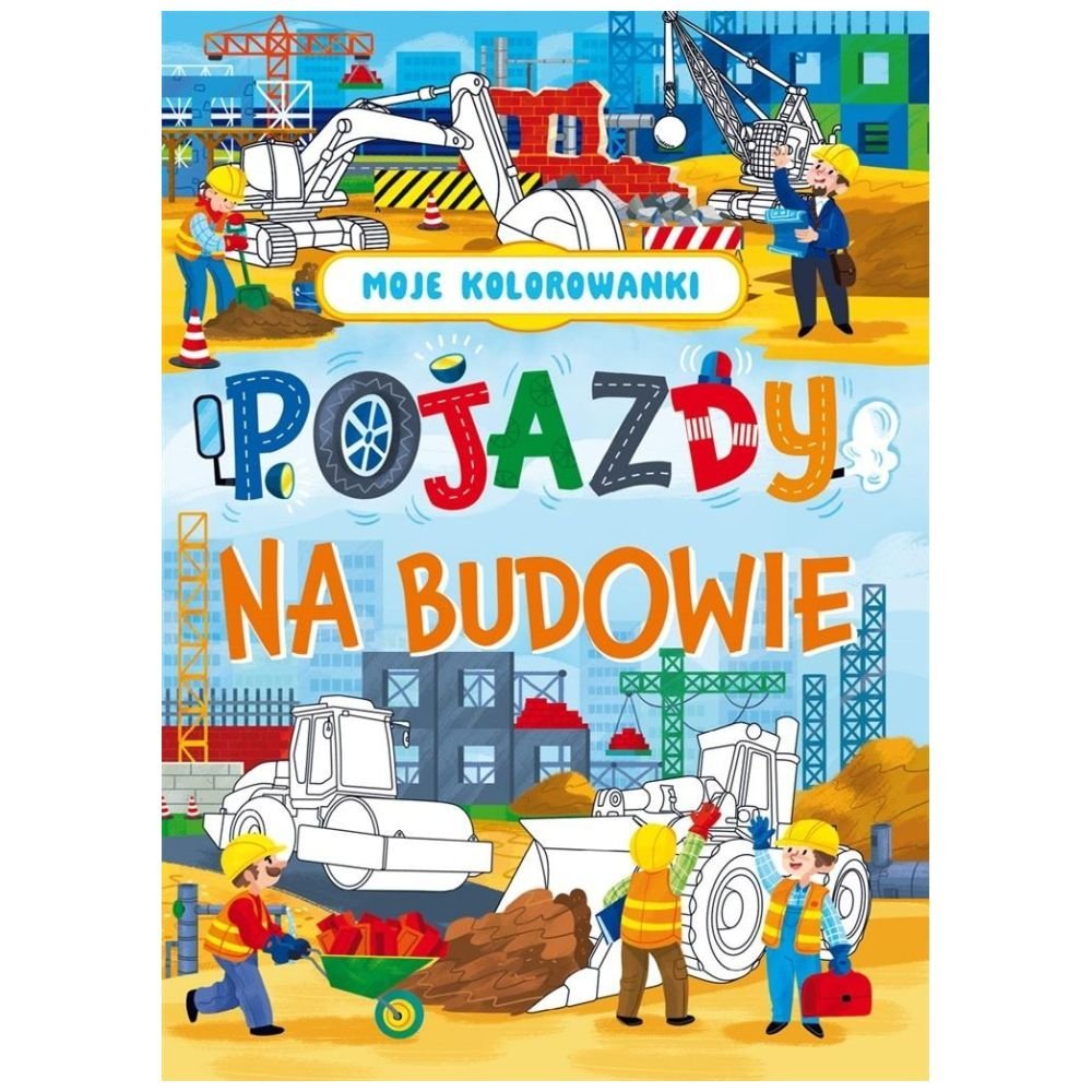 Moje kolorowanki to seria kolorowanek dla dzieci, które wprowadzą najmłodszych w świat kolorów oraz przyczynią się do rozwoju motoryki i kreatywności. Każda strona to nie tylko możliwość pokolorowania obrazka, ale również okazja do odkrywania i poznawania ciekawych pojazdów. W kolorowance Pojazdy na budowie znajduje się 16 szablonów do pokolorowania, np. wywrotka, betoniarka czy podnośnik koszowy.