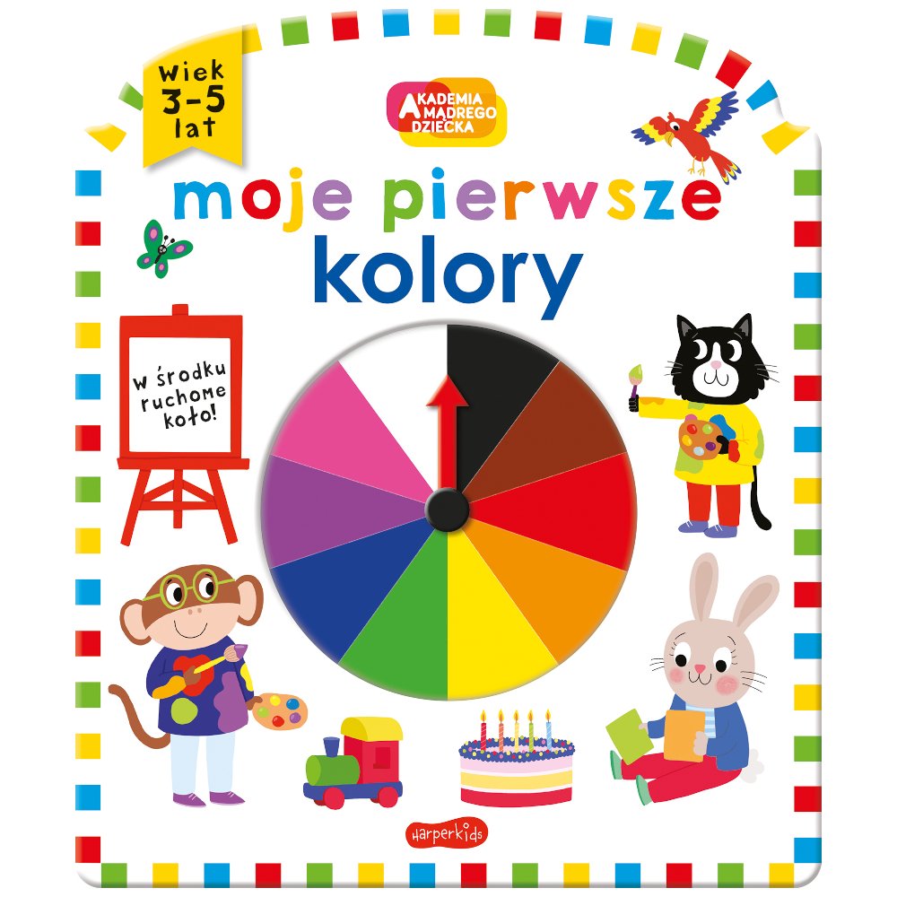 Moje pierwsze kolory Akademii Mądrego dziecka to kolejna pozycja z serii moje pierwsze od wydawcy HarperKids. Na pierwszej stronie książeczki mamy kolorowe koło. Dziecko musi zakręcić strzałką i wybrać kolor, który ona wskaże. Następnie trzeba odszukać zakładkę o takim kolorze