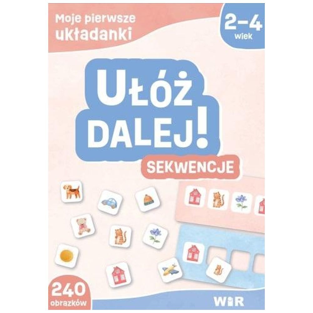 Zestaw edukacyjny wspierający rozwój językowy i poznawczy Twojego dziecka! Dzięki zabawom z układankami Ułóż dalej! Sekwencje maluchy uczą się odczytywania zasad i przygotowują się do mówienia i pisania. Tworzenie sekwencji stymuluje ich lewą półkulę mózgu oraz wspiera logiczne myślenie i umiejętność tworzenia struktur językowych. Zestaw jest zatem idealnym wsparciem terapii językowej oraz pomocą w przygotowaniu do czytania i pisania, a także w codziennym używaniu języka. W zestawie: 4 tekturowe plansze do układania sekwencji, 240 dwustronnych kartoników z obrazkami, instrukcja z propozycjami zabaw. Zestaw dedykowany jest dzieciom w wieku 2-4.