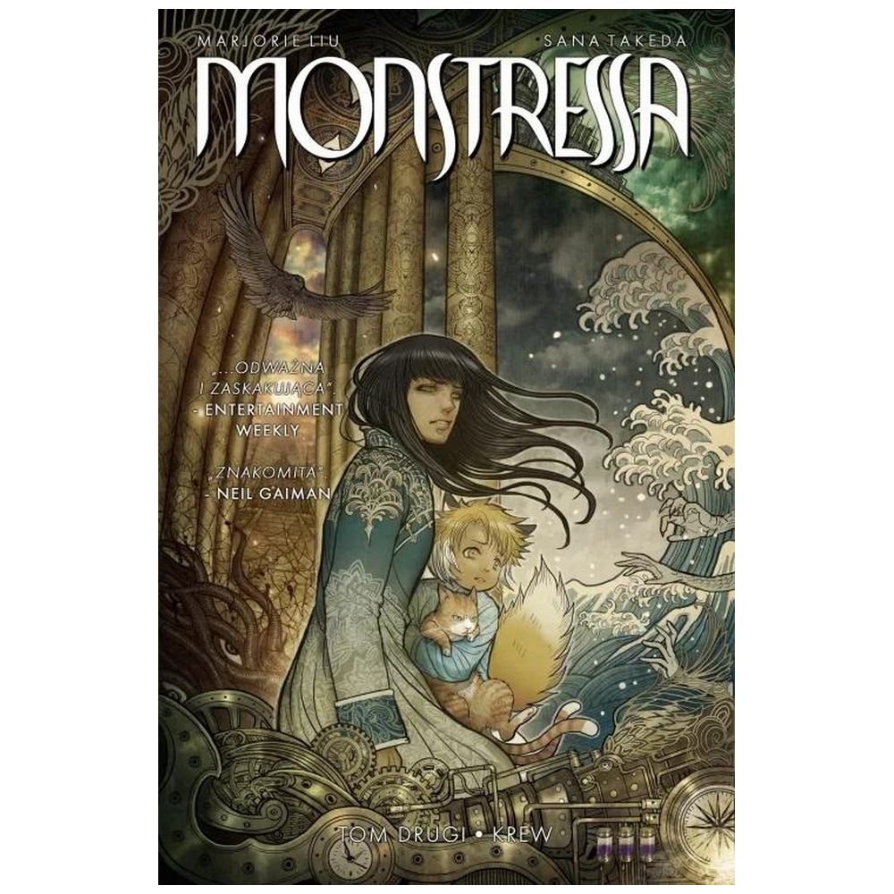 Monstressa powraca. Drugi tom niesamowicie wciągającej i oszałamiającej wizualnym mariażem art-deco, steampunku i mangi sagi autorstwa Marjorie Liu i Sany Takedy. Zdecydowanie jedna z najoryginalniejszych i najodważniejszych nowych serii komiksowych. Jej status potwierdzają liczne nominacje do Eisnerów i Nagroda Hugo dla najlepszej powieści graficznej roku 2017. Rekomenduje sam Neil Gaiman.