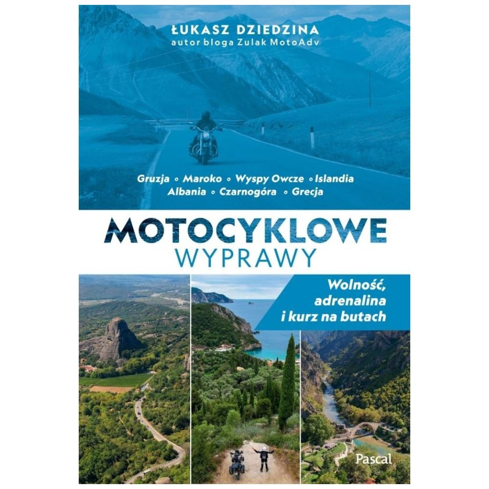 Niezwykła relacja z motocyklowych wypraw, w których Łukasz Dziedzina dzieli się swoimi przygodami z odludnych bezdroży, zachwytem nad cudami przyrody czy slalomami po miejskich labiryntach. Każda podróż to wciągająca historia podzielona na poszczególne dni. Wszystkie trasy oprócz klimatycznych opisów i zdjęć mają też kody QR umożliwiające pobranie śladów GPX do każdego etapu.