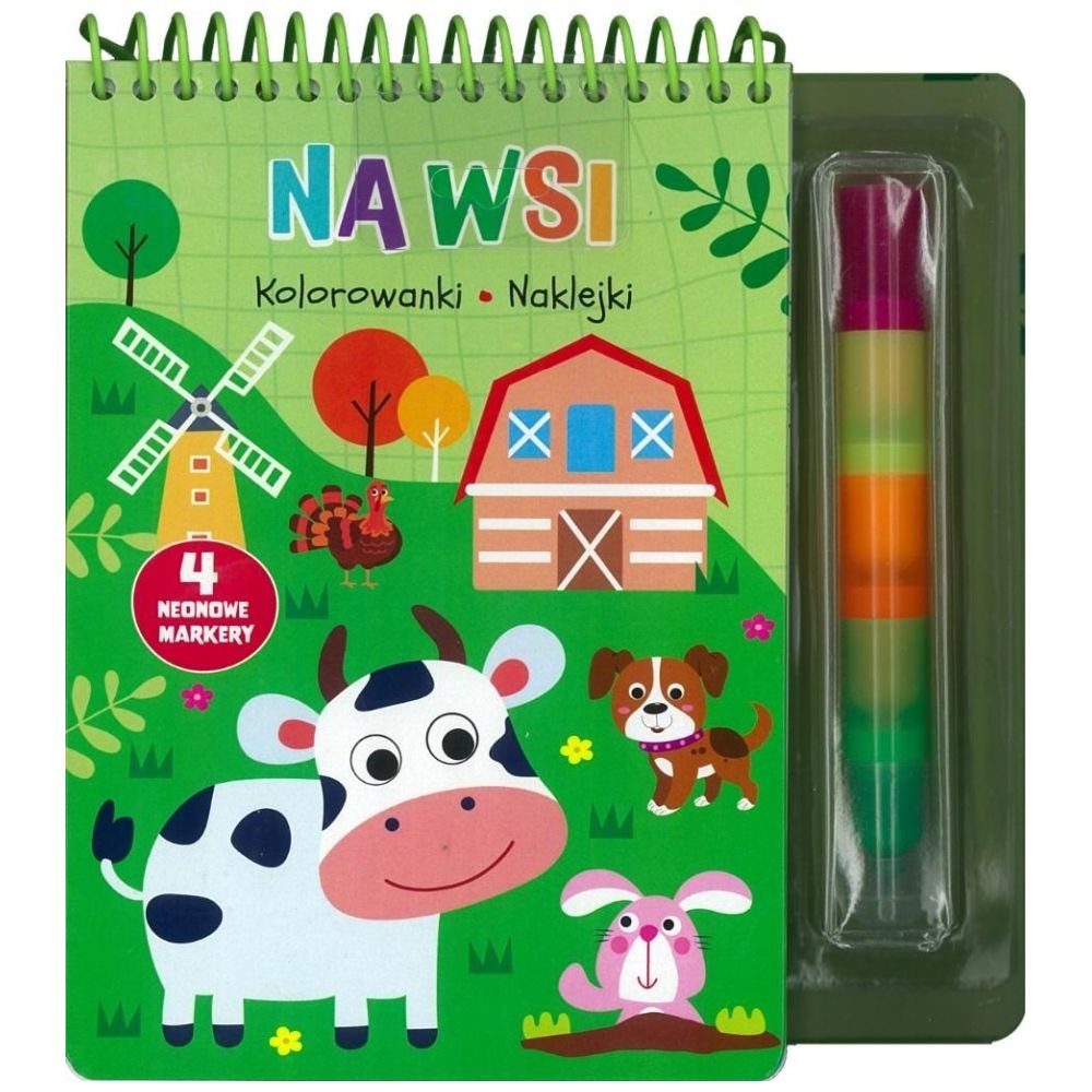 Na wsi. Kolorowanki naklejki 4 neonowe markery