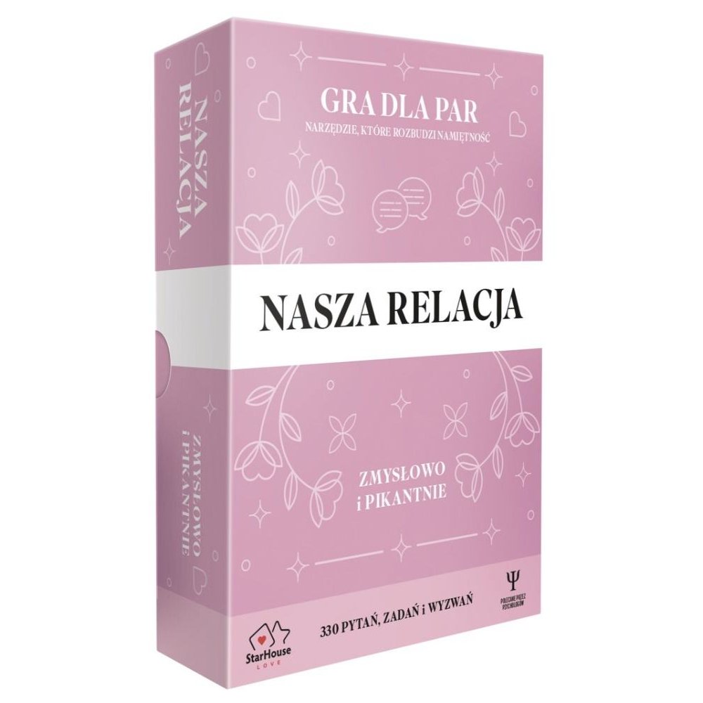 Namiętność to jeden z kluczowych elementów każdej relacji. Bez niej związek może stać się monotoniczny i pozbawiony ognia. Gra z serii NASZA RELACJA pozwala wzmocnić ten aspekt w waszym życiu. Daje możliwość intensyfikowania doznań w sposób pełen pasji i zaangażowania. Karty pełne wyzwań, pytań i zadań składają się na wyjątkową podróż do odkrywania nieznanych dotąd zakątków waszego związku. Dzięki tej grze przeżyjecie intensywne, pełne zmysłowości chwile, które na nowo rozpalą ogień miłości.