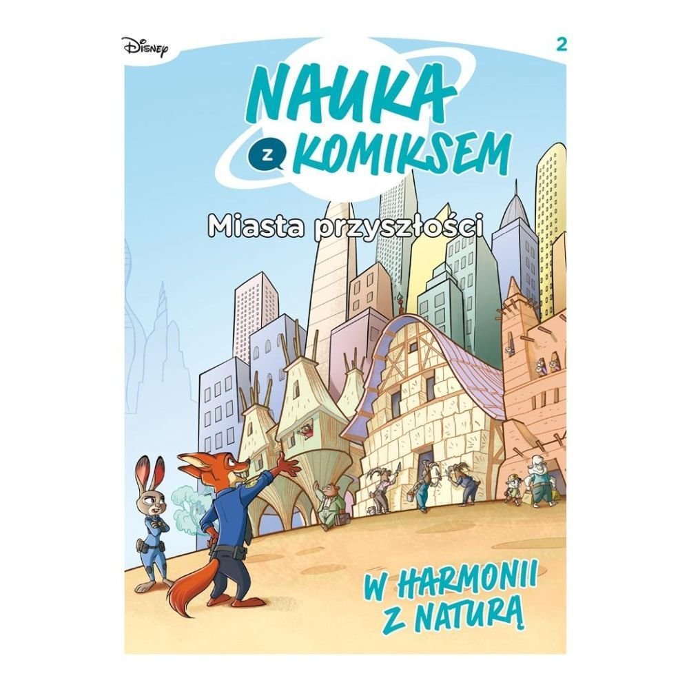 Tom drugi "Miast przyszłości" z serii "Nauka z komiksem" dla dzieci w wieku 8-12 lat. Zakres tematów został opracowany we współpracy z multidyscyplinarnym międzynarodowym komitetem naukowym posiadającym kompetencje w zakresie pisania dla młodych czytelników. Tom obejmuje zabawny komiks o przygodach postaci znanych z filmów Disneya, zawierający fakty naukowe, a na dodatkowych stronach znajdują się teksty bardziej szczegółowo omawiające treści naukowe zawarte w komiksie. Dwoje policjantów – Judy Hops i Nick Bajer – podejmuje śledztwo, które ma wyjaśnić, kto odpowiada za nielegalne wyrzucanie toksycznych odpadów w okolicy Szarakówka. Tropy prowadzą do Zwierzogrodu. Czego dowiedzą się nieustraszeni stróże prawa? Przeżyj z nimi ekscytującą przygodę. Dowiedz się, czym jest zielone budownictwo, przeczytaj o górnictwie miejskim i transporcie, który nie szkodzi naszej planecie.