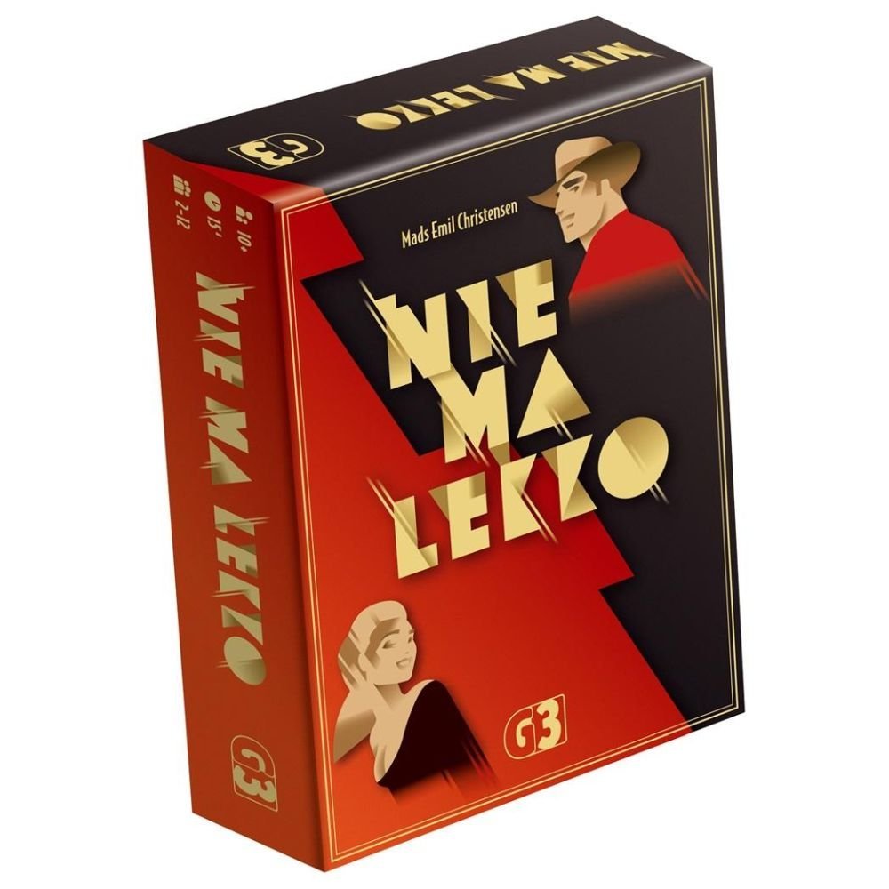 Gracze dzielą się rolami w grze, jedna osoba jest świadkiem, a pozostali detektywami. Detektywi współpracują, żeby odnaleźć właściwe słowo. Świadek jest jedyną osobą, która zna słowo i daje detektywom wskazówki. Dzięki nim muszą oni dowiedzieć się, o które słowo chodzi. Trudność polega na tym, że świadek porozumiewa się z detektywami tylko za pomocą kart dylematów. Czasem karty dylematów mają bezpośredni związek z danym słowem, np. dżdżownica jest zdecydowanie bardziej mokra niż sucha, ale w innych przypadkach może być dużo trudniej, np. chleb jest bardziej słodki czy kwaśny? Po każdej rundzie na stole będzie coraz mniej kart słów. Po piątej, ostatniej rundzie, na stole powinna zostać tylko jedna karta. Jeśli jest to karta z poszukiwanym słowem, gracze wygrywają. Uwaga: Nie ma lekko to nie jest łatwa gra, w końcu nie jest łatwo rozpoznać, jakie skojarzenia mają inne osoby. Ale praktyka czyni mistrza! Nie ma lekko to wciągająca gra imprezowa, gwarantująca burzliwe rozmowy przy stole! ZAWARTOŚĆ: 20 kart dylematów dla początkujących 120 kart dylematów 9 pustych kart dylematów 16 kart klucza 24 niebieskie kostki wpływu 1 żółty znacznik punktowania instrukcja