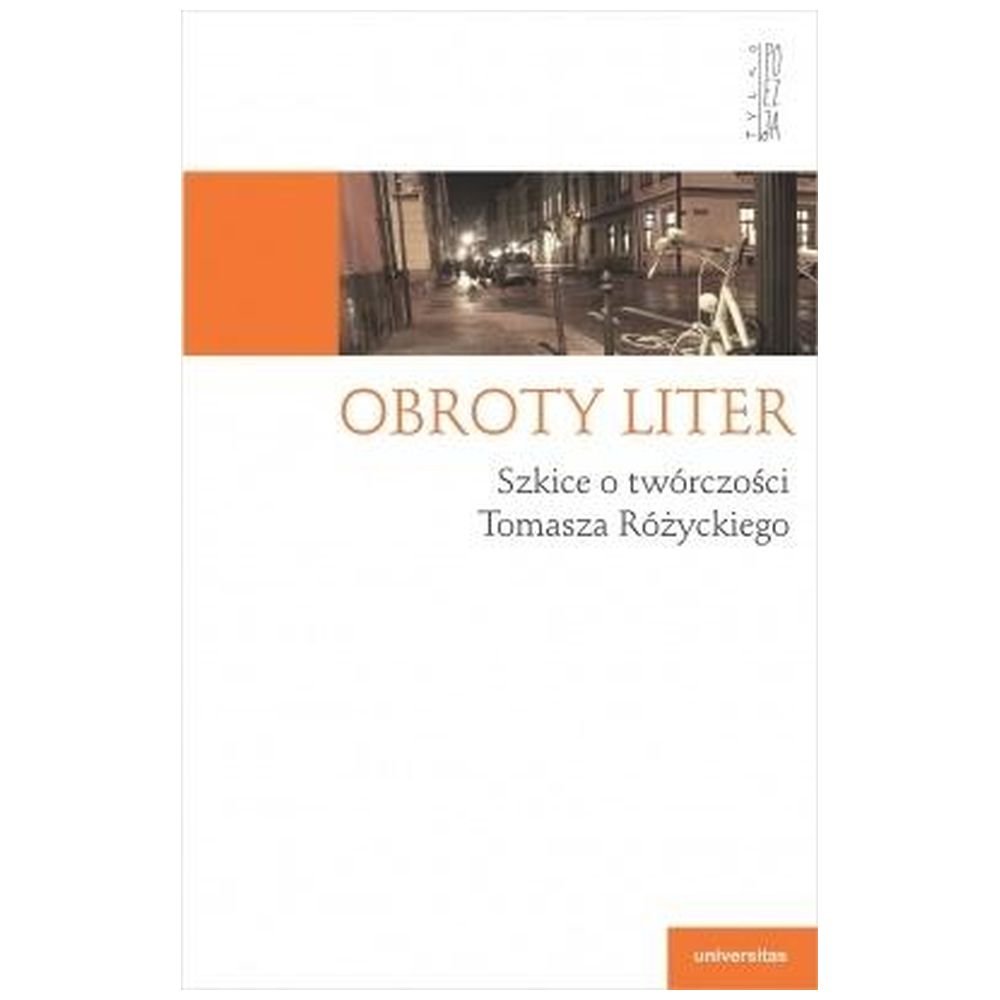 Obroty liter to pierwsza książka poświęcona twórczości Tomasza Różyckiego, zawierająca dwadzieścia cztery studia autorów reprezentujących różne pokolenia i perspektywy interpretacyjne, polskie i zagraniczne środowiska naukowe (są tu także tłumacze poety). Przynosi ona szereg syntetycznych i analitycznych ujęć, w których fenomen poezji Różyckiego odczytywany jest w inspirujących kontekstach. Monografię uzupełnia bibliograficzne opracowanie dorobku autora Dwunastu stacji. On sam zamieścił w Obrotach liter swój nowy esej, w którym stawia pytania o los książek i o zagrożenia dla wolnego słowa.