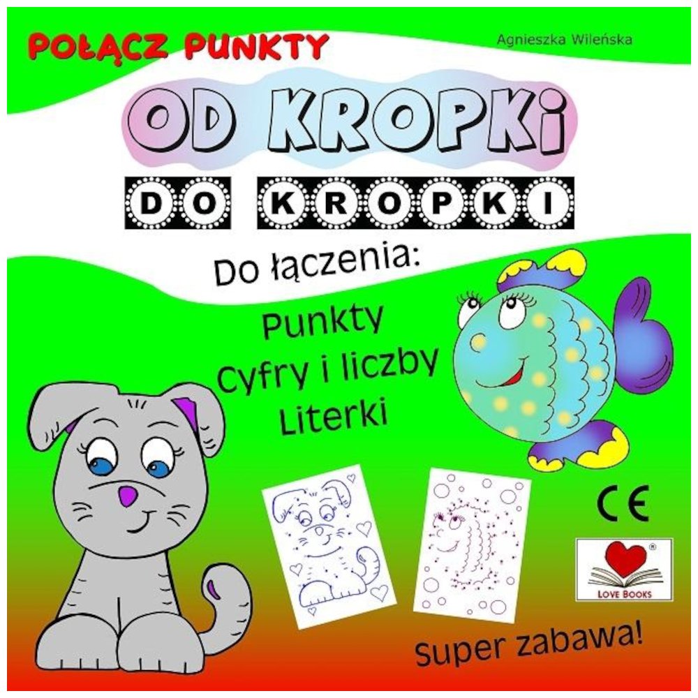 W książce znajdują się zadania łączenia punktów, cyfr i liczb oraz literek.