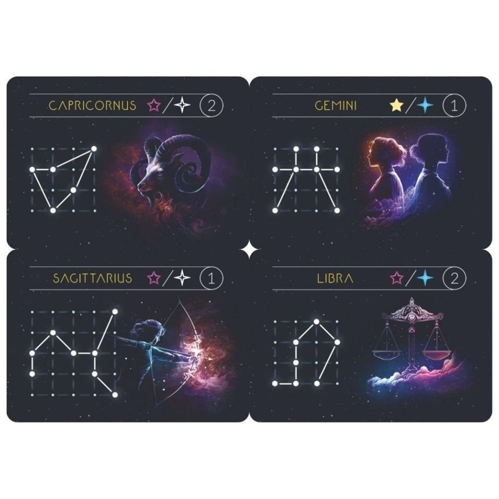Zawartość: 12 kart z konstelacjami Zodiaku.