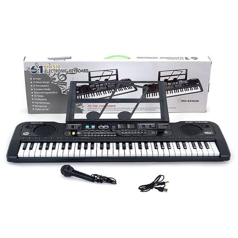 organy 61 klawiszy z kablem USB do ładowania, mikrofon; Box