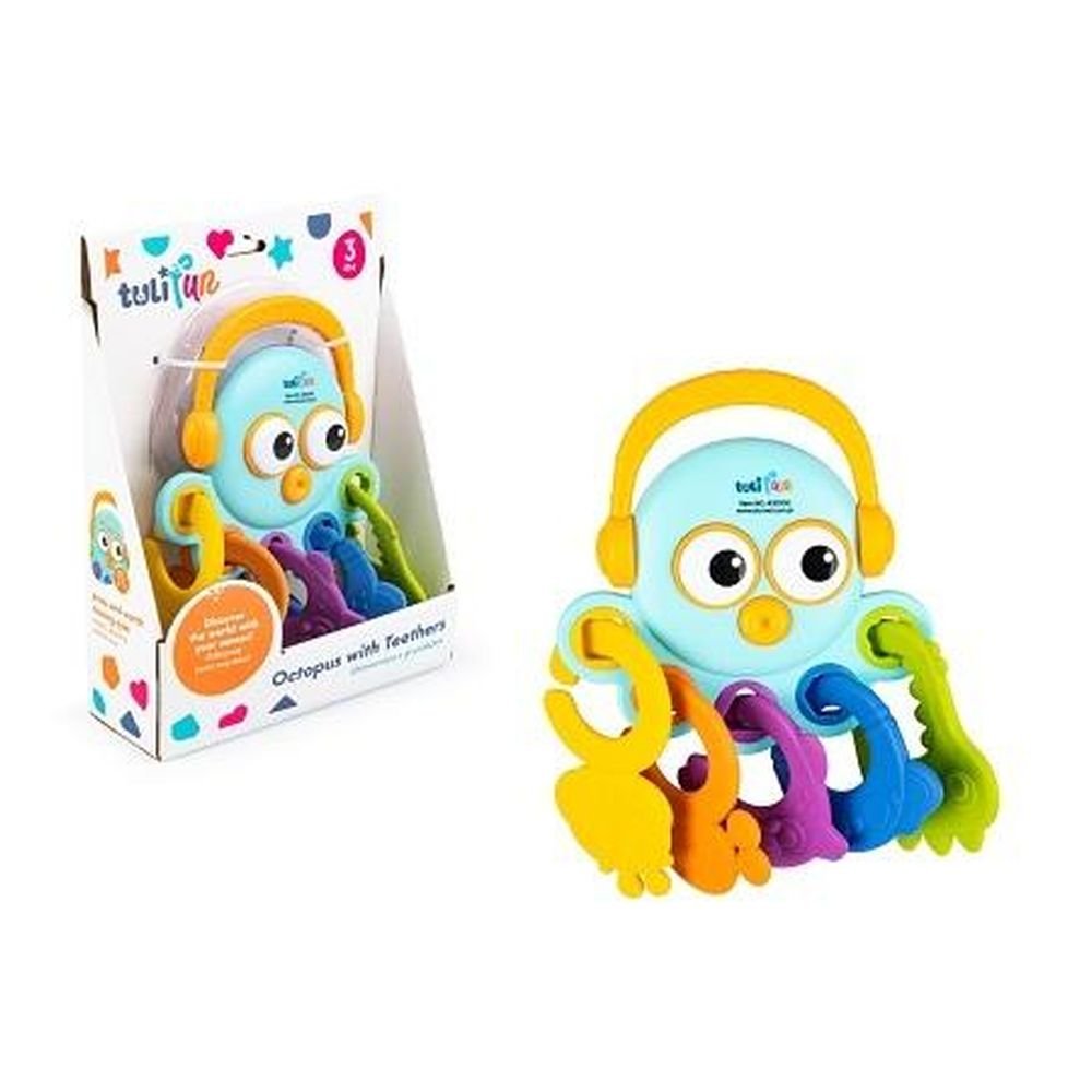 Ośmiornica pomoże ząbkującemu maluchowi, przynosząc ulgę obolałym dziąsełkom. Wszystko za sprawą kolorowych, odczepianych gryzaków w kształcie zwierzątek, których w zestawie znajduje się aż 5! Każdy z nich odznacza się innym kolorem, kształtem oraz zróżnicowanymi wypustkami, które podczas gryzienia masują podrażnione ząbkowaniem dziąsła bobasa.
