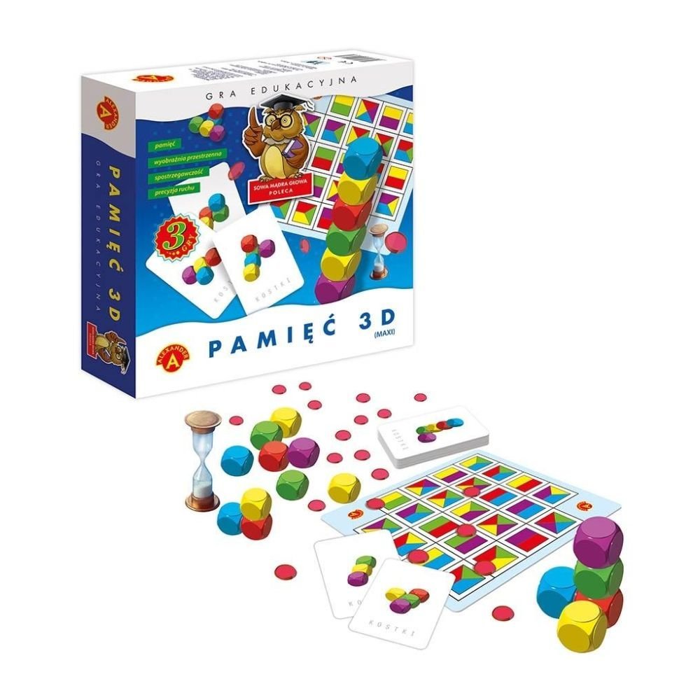 “Pamięć 3D” i ” Pamięć 3D – kolory” to dwie gry w których gracze muszą wytężyć swą pamięć, dzięki której będą mogli odtworzyć przestrzenny układ wykorzystywanych w grze kostek i wybrać odpowiedni zestaw kolorów. Obie gry to znakomity trening pamięci i wyobraźni przestrzennej. Do trzeciej gry