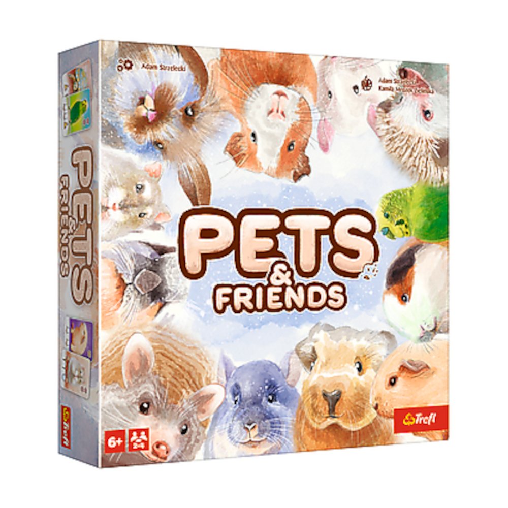 Ćwiczcie pamięć, rozwijajcie umiejętność oceny ryzyka i sprawdźcie, kto zdobędzie najwięcej punktów. Pets & Friends to nie tylko wciągająca gra familijna, ale również piękne ilustracje domowych zwierząt, które zachwycą zarówno dzieci, jak i dorosłych. Rozgrywka dla 2-4 graczy powyższej 6. roku życia, średni czas gry – 20 minut. W opakowaniu znajdziecie 28 kart zwierzątek, 40 kafelków zabawek, 5 żetonów dywaników oraz zrozumiałą instrukcję.